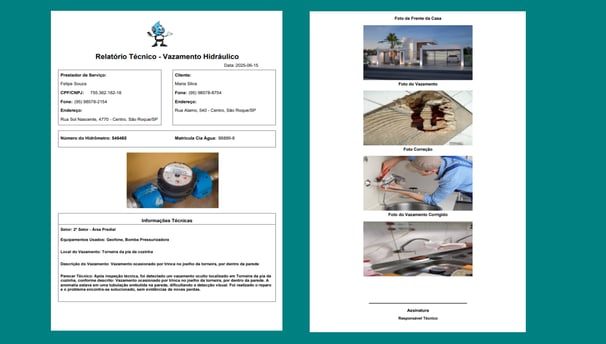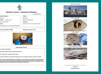 Gere relatórios técnicos de vazamento hidráulico de maneira simples e eficiente com nosso sistema.