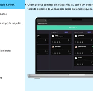 Inclui Chatbot, agendamento e respostas automáticas, tudo personalizável