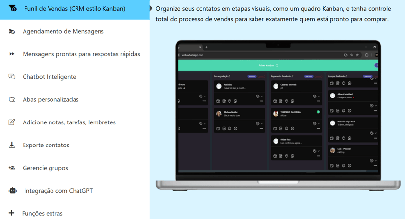 Interface idêntica ao WhatsApp Web, fácil de usar desde o primeiro minuto